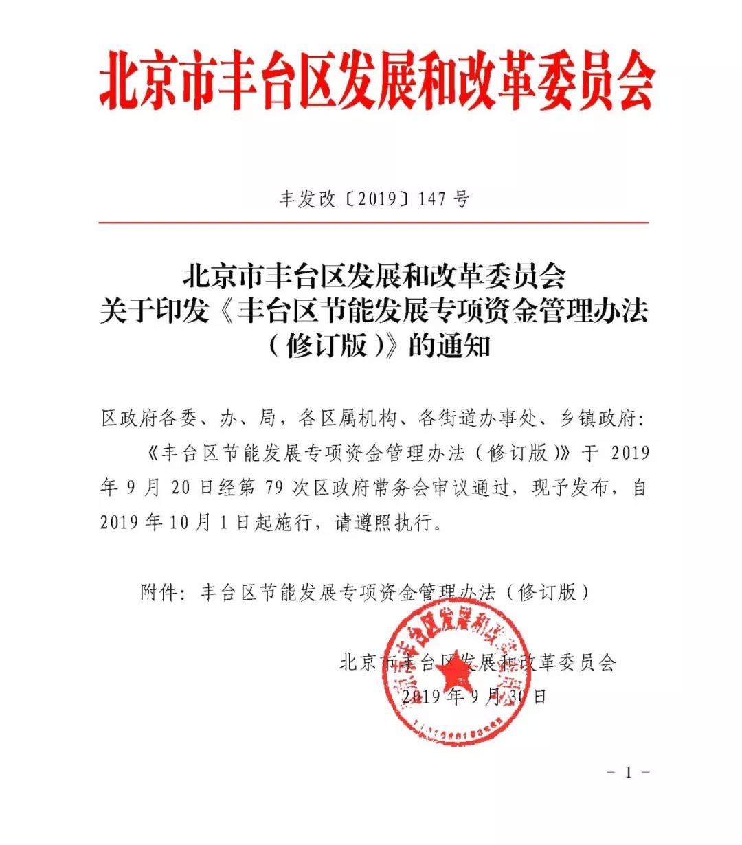 北京市豐臺區***發布關于印發《豐臺區節能發展專項資金管理辦法(修訂版)》的通知。