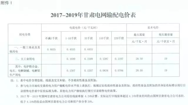 1、2017-2019年甘肅電網(wǎng)輸配電價(jià)表
