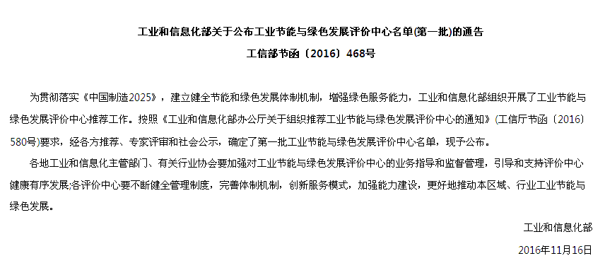 工業節能與綠色發展評價中心名單