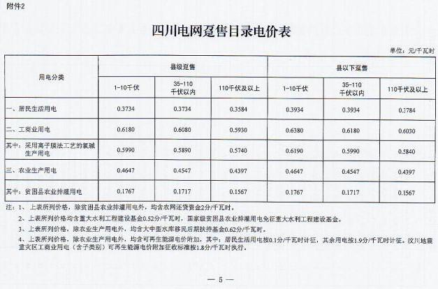 近日,四川省發 改 委發布了《四川省發展和改革委員會關于降低四川電網目錄銷售電價合理調整電價結構有關事項的通知》(以下簡稱“通知”)。通知指出,自2017年7月1日起,取消向燃煤發電企業征收工業企業結構調整專項資金,降低重大水利工程建設基金和中大型水庫移民后期扶持基金征收標準,降低后的征收標準分別為0.52分/千瓦時、0.62分/千瓦時。燃煤發電機組有關電價政策另行明確。具體情況如下:
