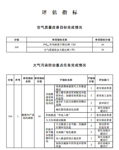 第三條評(píng)估指標(biāo)包括空氣質(zhì)量改善目標(biāo)完成情況、大氣污染防治重點(diǎn)任務(wù)完成情況。