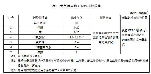 (2)自本標(biāo)準(zhǔn)實施之日起,紡織染整企業(yè)大氣污染物無組織排放監(jiān)控點濃度限值應(yīng)符合表2規(guī)定。