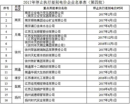 江蘇省決定對(duì)部分企業(yè)停止實(shí)施差別電價(jià)和懲罰性電價(jià)
