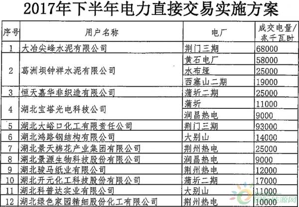 湖北發布:《2017年下半年電力直接交易實施方案》