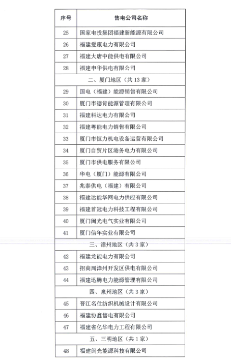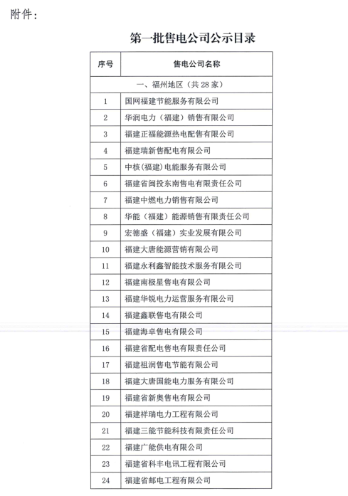 福建第一批售電公司公示 包含53家售電公司