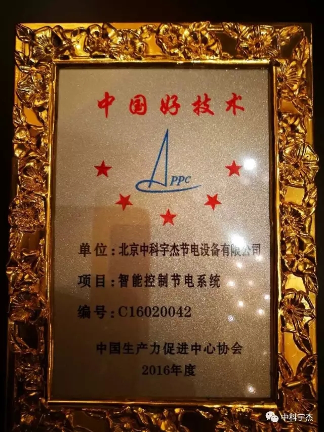 熱烈祝賀“中科宇杰智能控制節電系統”榮獲2016年度中國好技術殊榮