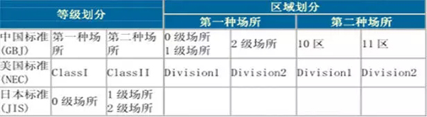(1)在爆炸性氣體區(qū)域(0區(qū)、1區(qū)、2區(qū))不同電氣設(shè)備使用安全級別的劃分。如旋轉(zhuǎn)電機選型分為隔爆型(代號d)、正壓型(p)、增安型(e)、無火花型(n)