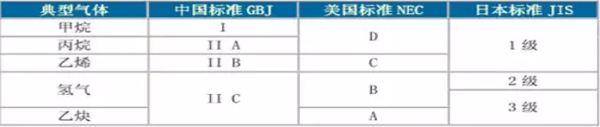 (2)氣體或蒸氣爆炸性混合物等級的劃分,分為ⅡA、ⅡB、ⅡC三種,這些等級的劃分主要是依照最大試驗安全間隙(MESG)或最小點燃電流(MICR)來區(qū)分的。