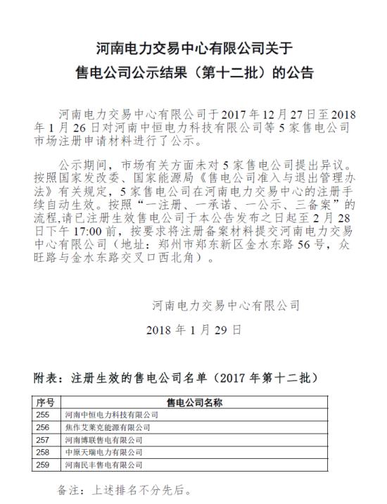 河南公布第十二批售電公司名單
