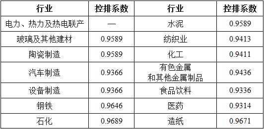 各行業(yè)控排系數(shù)