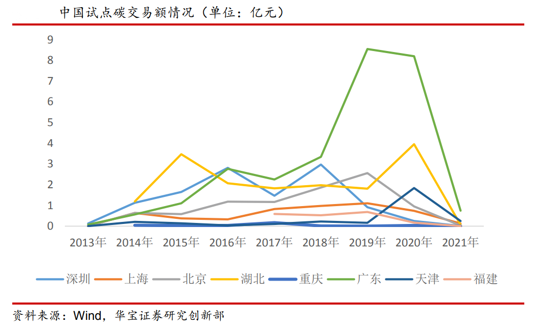 目前,全國共有8個地區在開展碳排放權交易試點,包括:北京、天津、上海、重慶、湖北、廣東、深圳、福建。