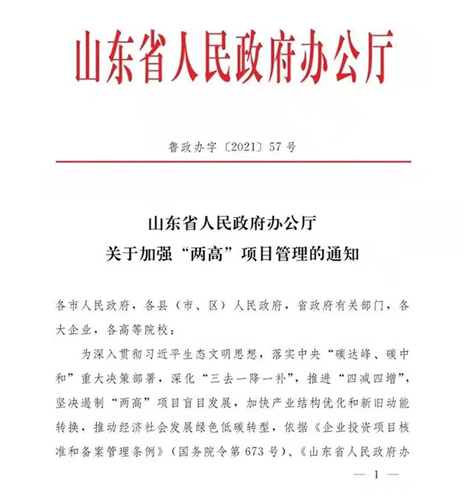山東:嚴控“兩高”項目(高耗能高排放項目)把不符合要求的“兩高”項目堅決拿下來。