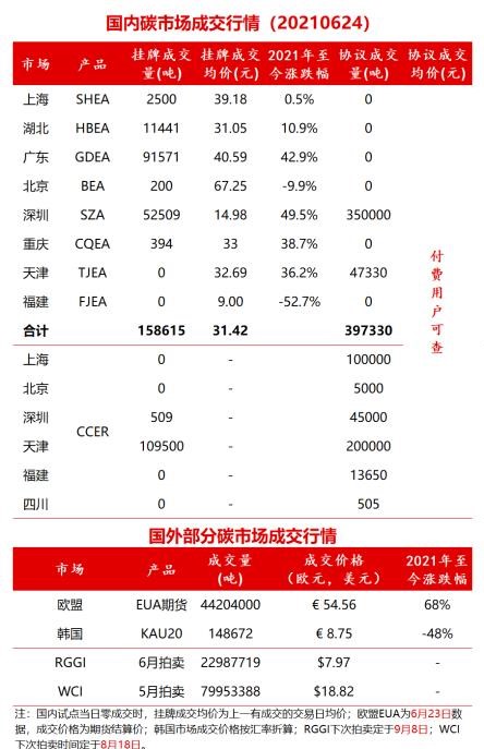 6月24日國內碳市場交易行情:2021年至今漲幅最高到達49.5%。