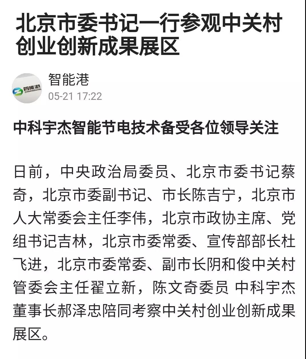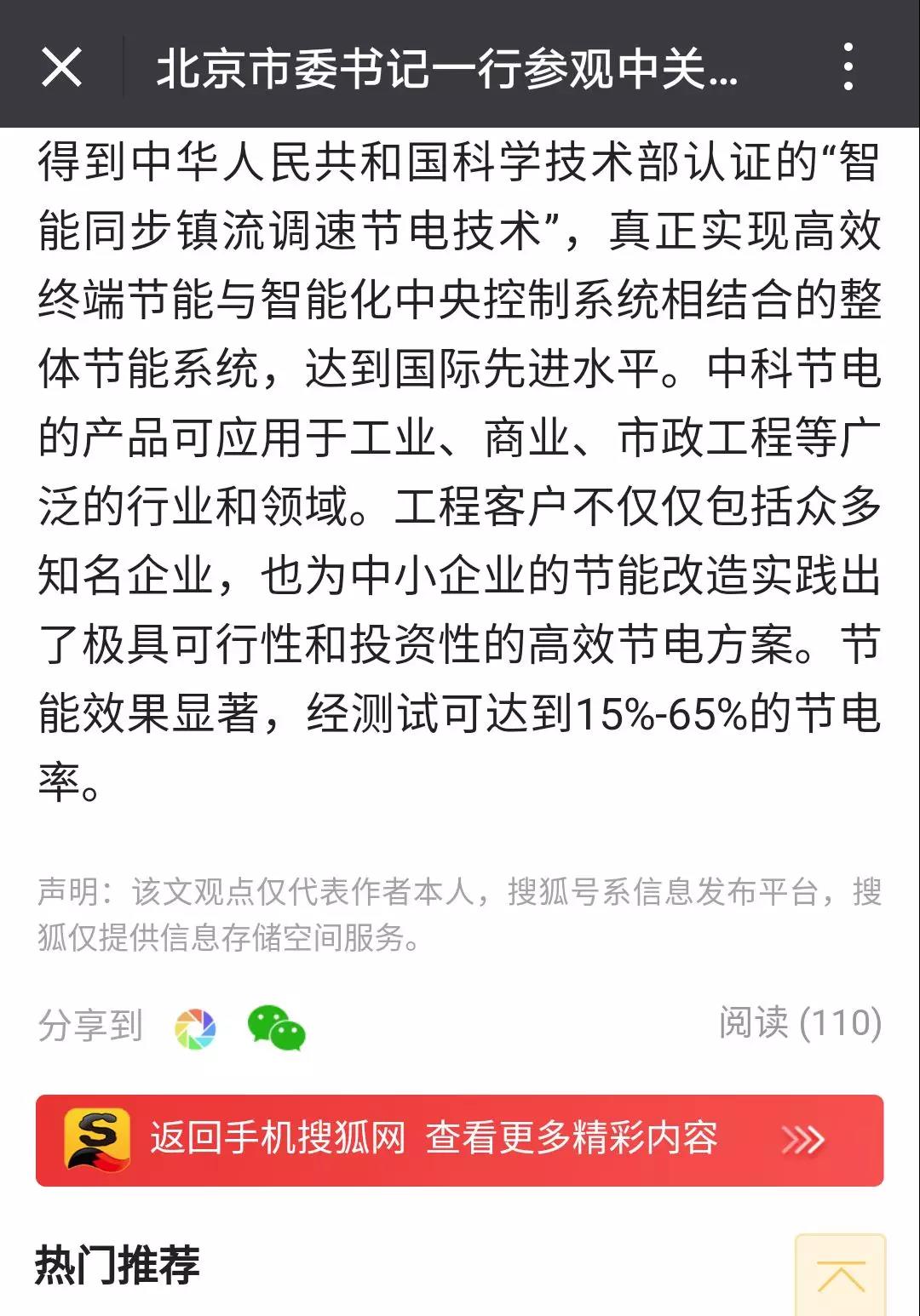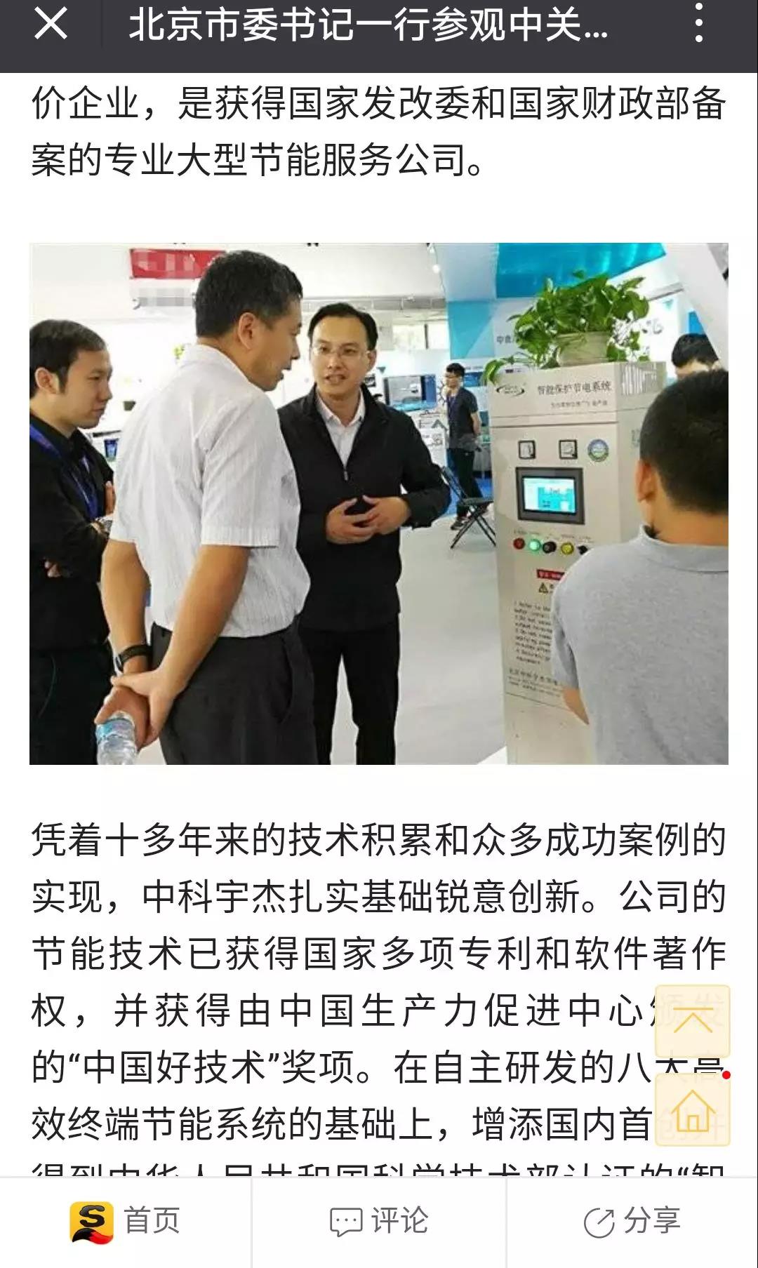 厲害了!中科節電技術在科博會上備受北京領導關注,引搜狐新聞報道!