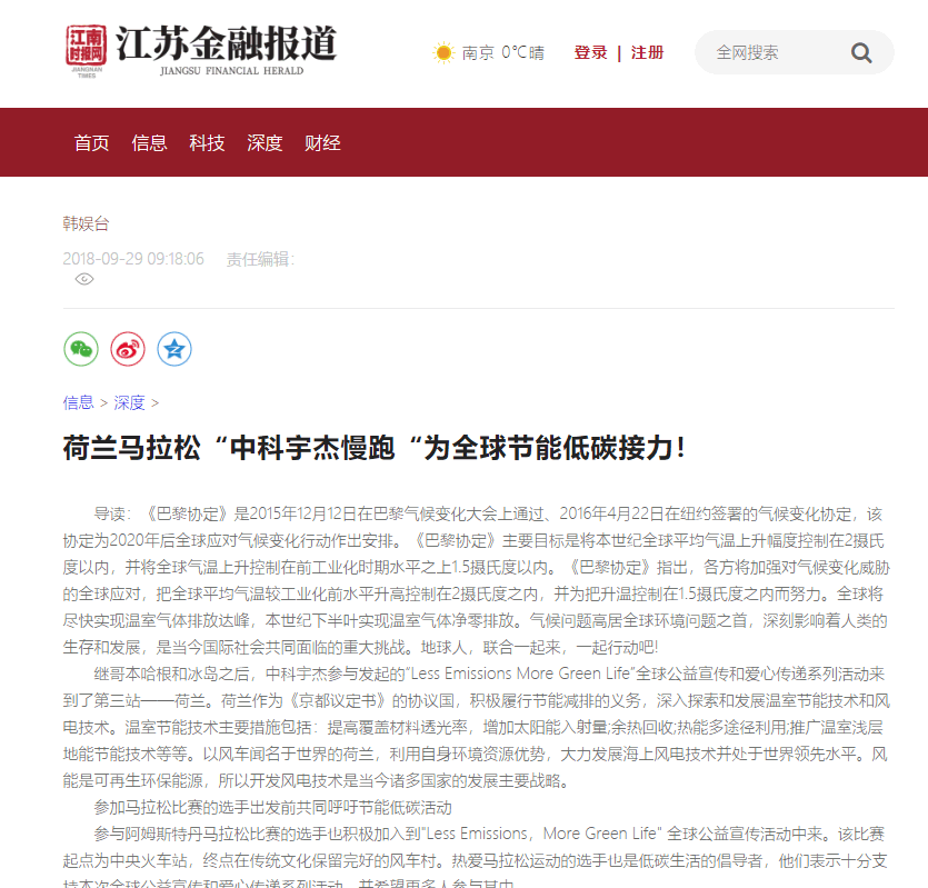 江南時報網(wǎng):荷蘭馬拉松“中科宇杰慢跑“為全球節(jié)能低碳接力!