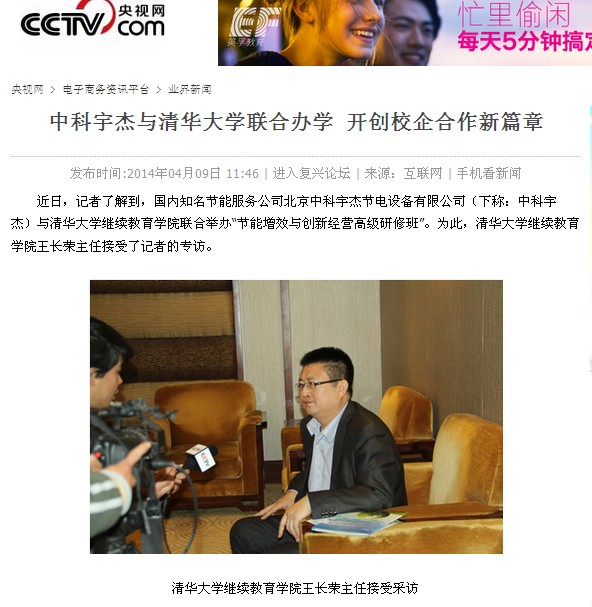 ????? 近日,記者了解到,國內知名節能服務公司北京中科宇杰節電設備有限公司(下稱:中科宇杰)與清華大學繼續教育學院聯合舉辦“節能增效與創新經營高級研修班”。為此,清華大學繼續教育學院王長榮主任接受了記者的專訪。
