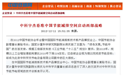 中科宇杰看準(zhǔn)中國節(jié)能減排空間啟動西部戰(zhàn)略