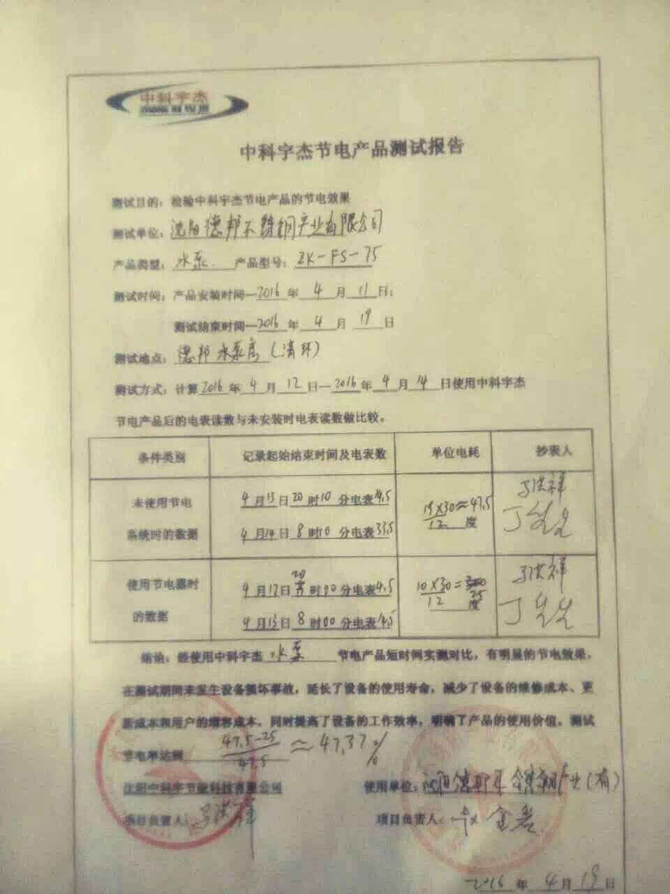 安裝調試驗收,節能效率高達47.37%。節能設備安裝后,不但完全沒有對原設備造成不良的影響,還起到了延長設備壽命,減少維修成本的作用。該項目試點工程的節電效果顯著,得到了企業領導的一致認可。
