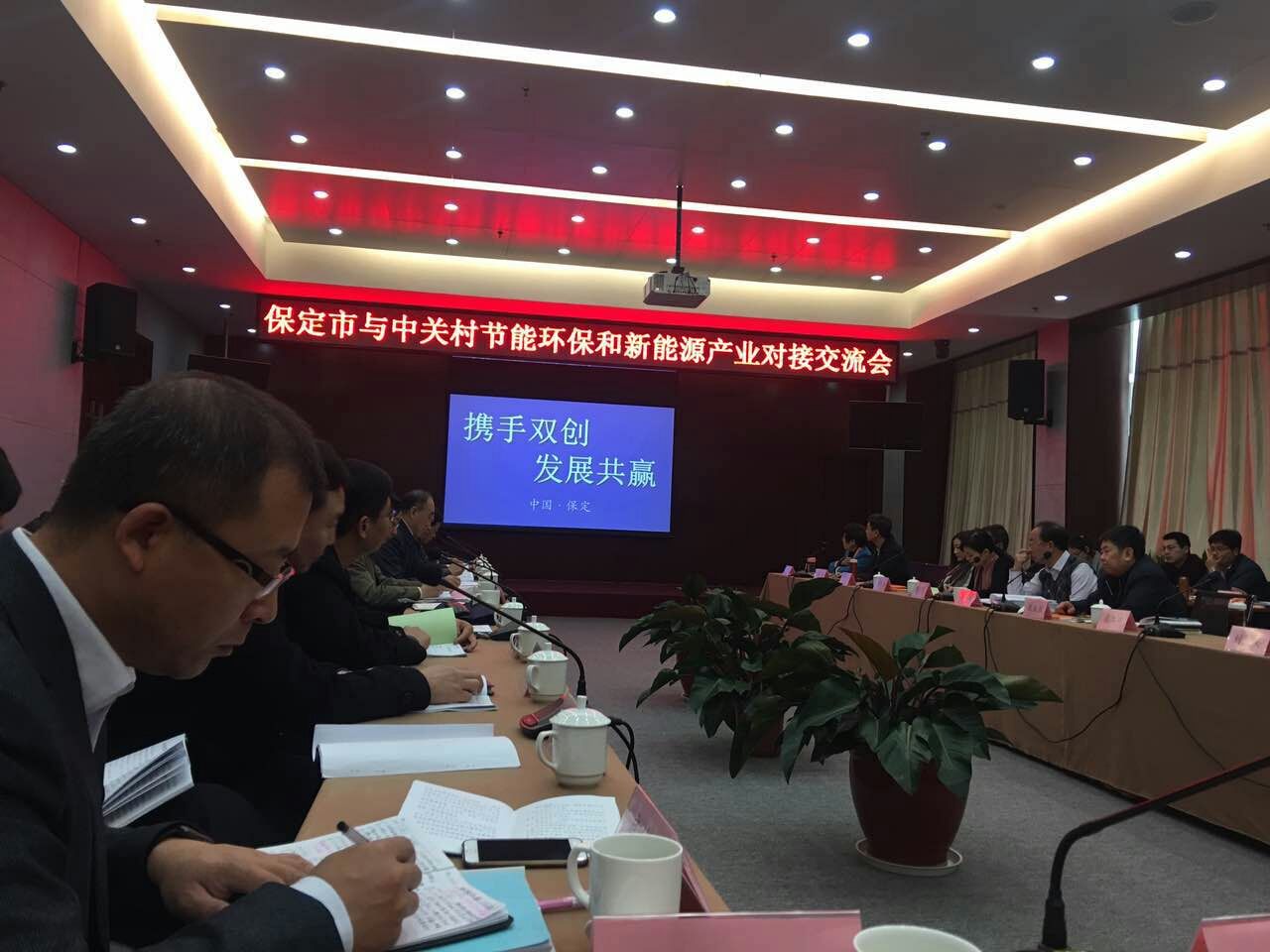 ▲保定市與中關村節能環保和新能源產業對接交流會會議現場