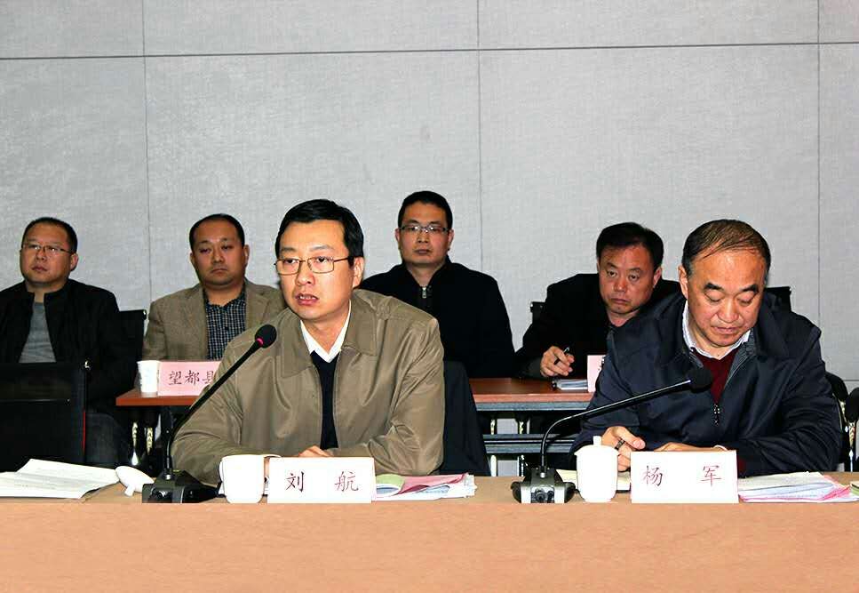 ▲保定委常委、副市長劉航(左)發表講話,保定市政府副秘書長、市協同辦主任楊軍參會(右)